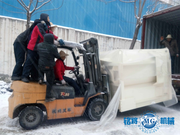 3.2018年1月7-9日,客戶指定發(fā)貨日期,適逢大雪嚴(yán)寒天氣,銘將員工戰(zhàn)天斗地,在冰天雪地中,按時按量保質(zhì)完成9輛貨柜裝箱任務(wù):